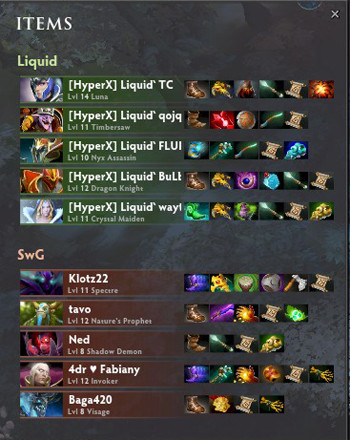 With the Aegis in hand, they try to initiate a teamfight and pick off the Luna first off quite efficiently, however the BKBs help Liquid stay alive as they demolish their opposition and move in for the throne. Swag stayed in a game a while longer, with Shadow Fiend and Nature's Prophet trying to make something happen but have to call GG in a few moments anyways as the Throne falls.