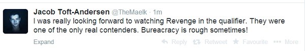 Maelk saddened by the newsFor many the decision may be counter-intuitive given that a roster change means they lose their chance at competing at the biggest LAN event of the year. However, given a first place finish secures a place at TI4, and a second place only puts a team with a 1-in-4 chance of making it to the finals via the Play-in tournament in Seattle, Revenge were far from certain of their place.