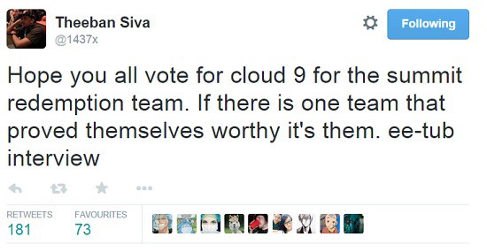 BigDaddy who posted a "promise to do a BigDaddy Cannonball" as well as 1437. Their campaign was further strengthened by an awesome collection of pictures posted up on Reddit by A-U-R-A entitled: "Why Cloud9 is the Most American, non-American Dota Team (and Deserves Your Summit Compendium Vote)."