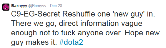 Henrik 'AdmiralBulldog' Ahnberg joining Team Secret. The tweet could be seen as a callout to Secret for poaching two of Alliance's players (with