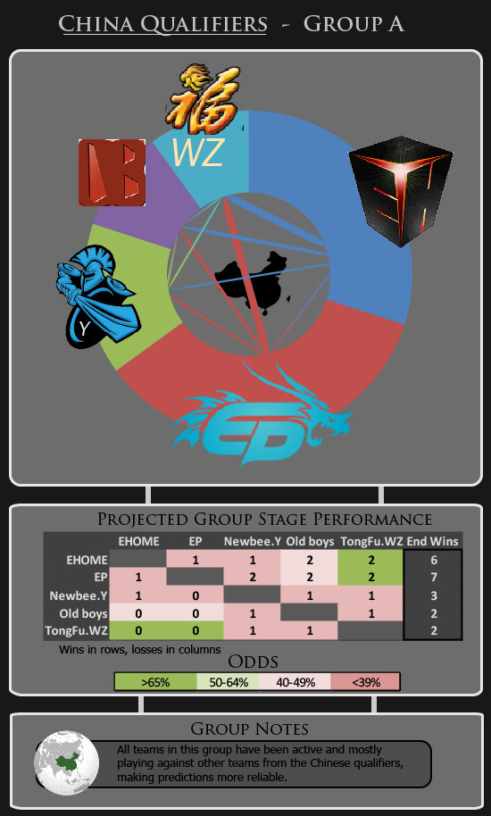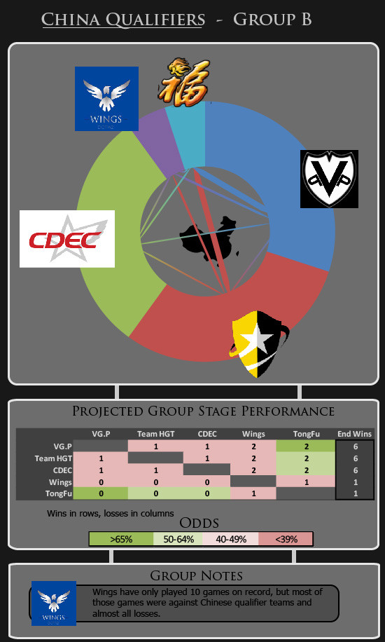 Edit: fixed a typo which stated dark red was labelled with incorrect percentage and a cell was missing its color in the graphic for China Qualifiers Group B.