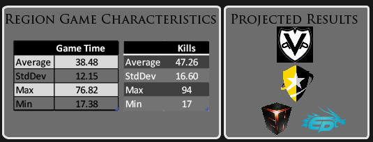 If teams have been playing a lot of higher-ranked squads (for example, if North American Rejects had been playing against EG, Secret, and Empire for most of their games) over time they would probably lose a lot of Elo relative to their peers who are only playing against similarly-ranked teams. So I checked to see how much Elo was being lose in small increments (e.g. against much better teams) and found that no team had their Elo significantly altered by this factor.In order to prevent the possibility of a very recent surge or drop of Elo from one or two games, I used averaged each team's Elo over the last week rather than just using the current Elo, which will increase the reliability of calculations between a team that took the last week off and a team that has been very active over the last week.