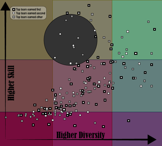 In other words, as the average skill goes up the average diversity must go up, too. Otherwise the top-ranked team's odds of winning change.