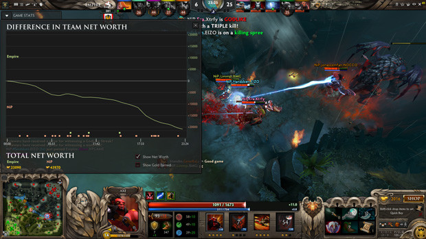 NiP struggled against that systematic play in the only way they could. se Linus 'Limmp' Blomdin's Lina bought a shadowblade and helped se Adrian 'Era' Kryeziu's Antimage splitpushing. The dirt-poor Legion Commander couldn't find a single pickoff and instead resigned himself to shutting down Empire's supports during teamfights.