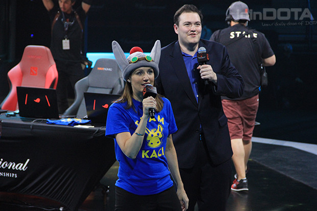 This year a swarm of pro players came to the stage, and a real-life captain's mode began! Each member of Kaci and Slack's teams got to pick the pro they wanted to play with/next to. The first player picked was